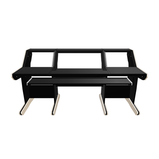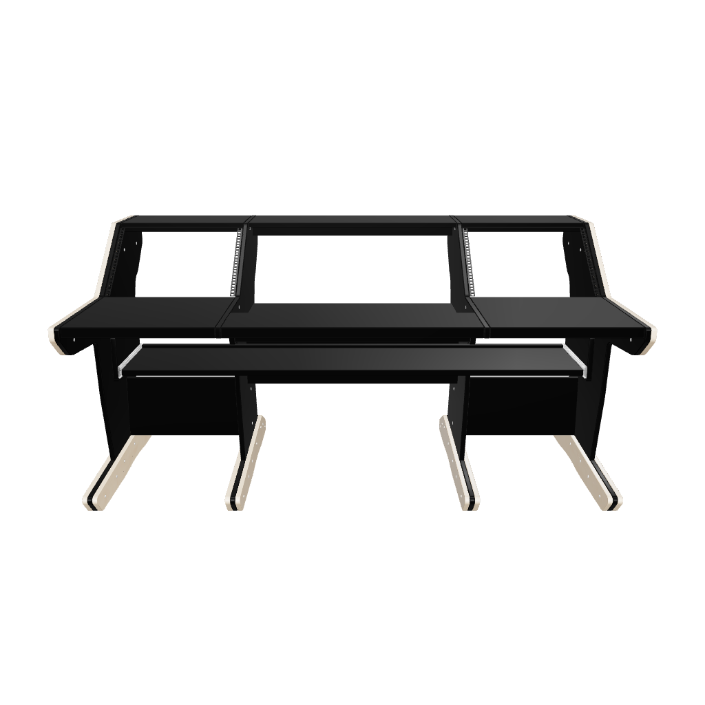 Following the classic lines of the console, our workstation for the API The Box gives you 2x8U rack space on both sides of the console. The wide top shelf adds space for monitors and screens. The desktop gives you room for tabletop devices and a mouse and keyboard.
