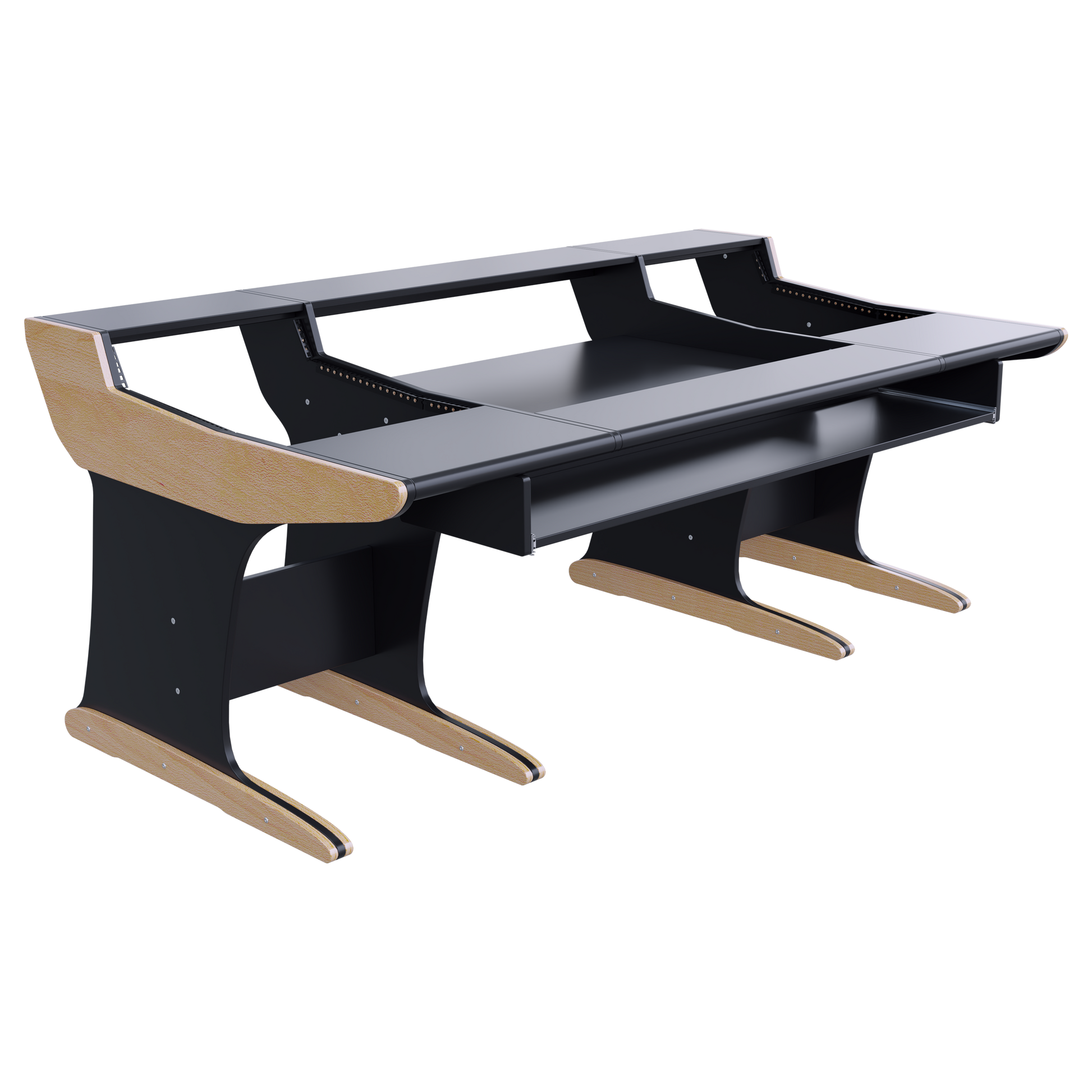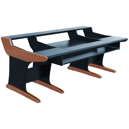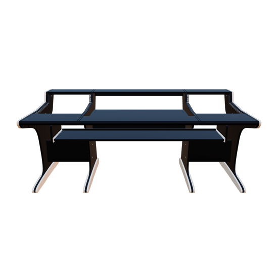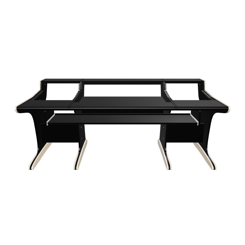 Built with our signature console desk design, the Avid C24 workstation offers 2x14U rack space on each side, providing ample room for outboard gear. The spacious top shelf accommodates monitors and screens, while the desktop offers plenty of room for tabletop devices, a keyboard, and a mouse—allowing for a streamlined and efficient Pro Tools setup.