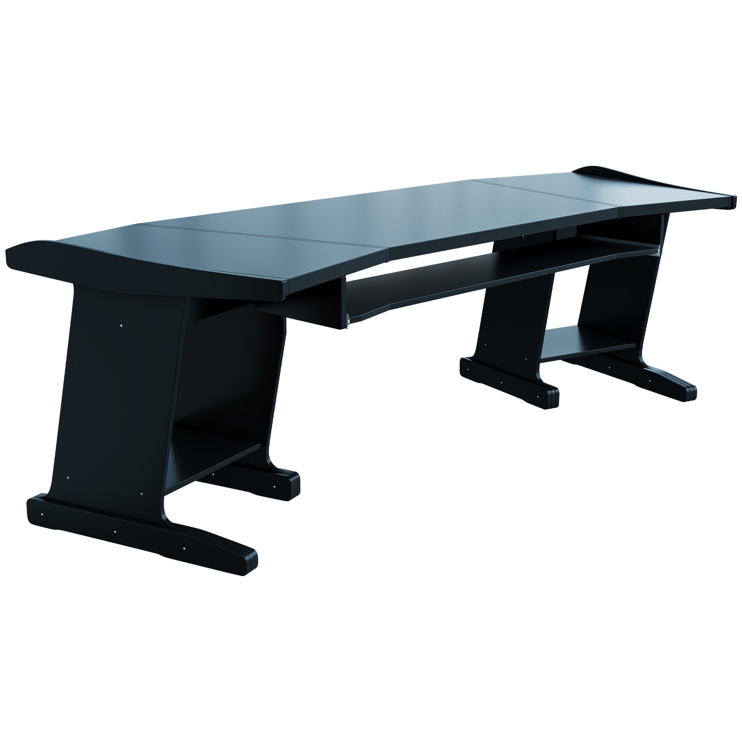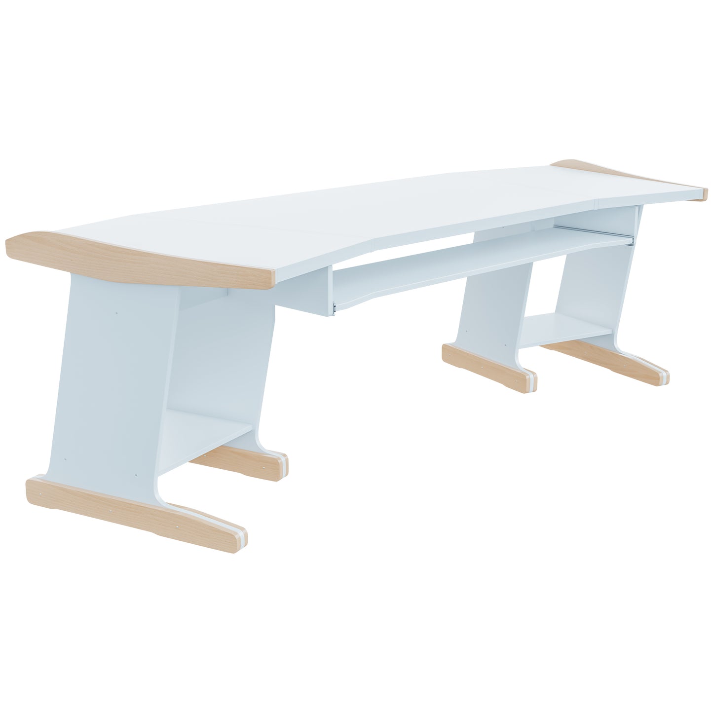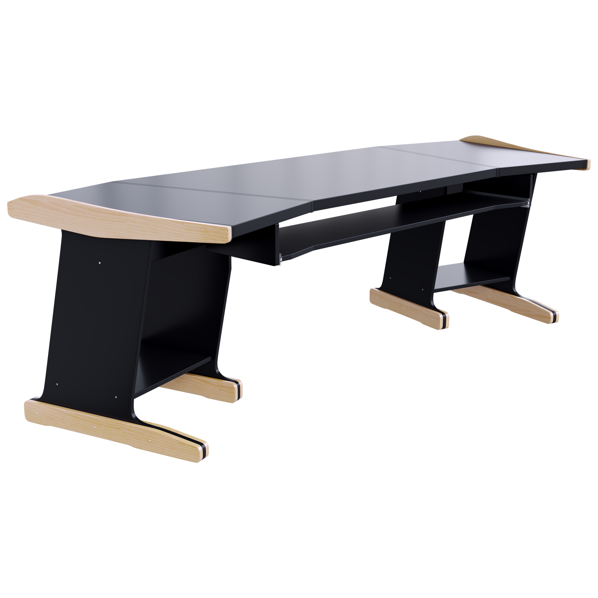 Enjoy the freedom of the super wide desktop space and height-adjustable keyboard tray. For added convenience, flat shelves provide extra storage, ideal for organizing accessories, cables and other tools. This combination of features makes the workstation a versatile and efficient solution for any creative studio.