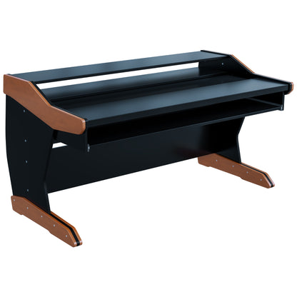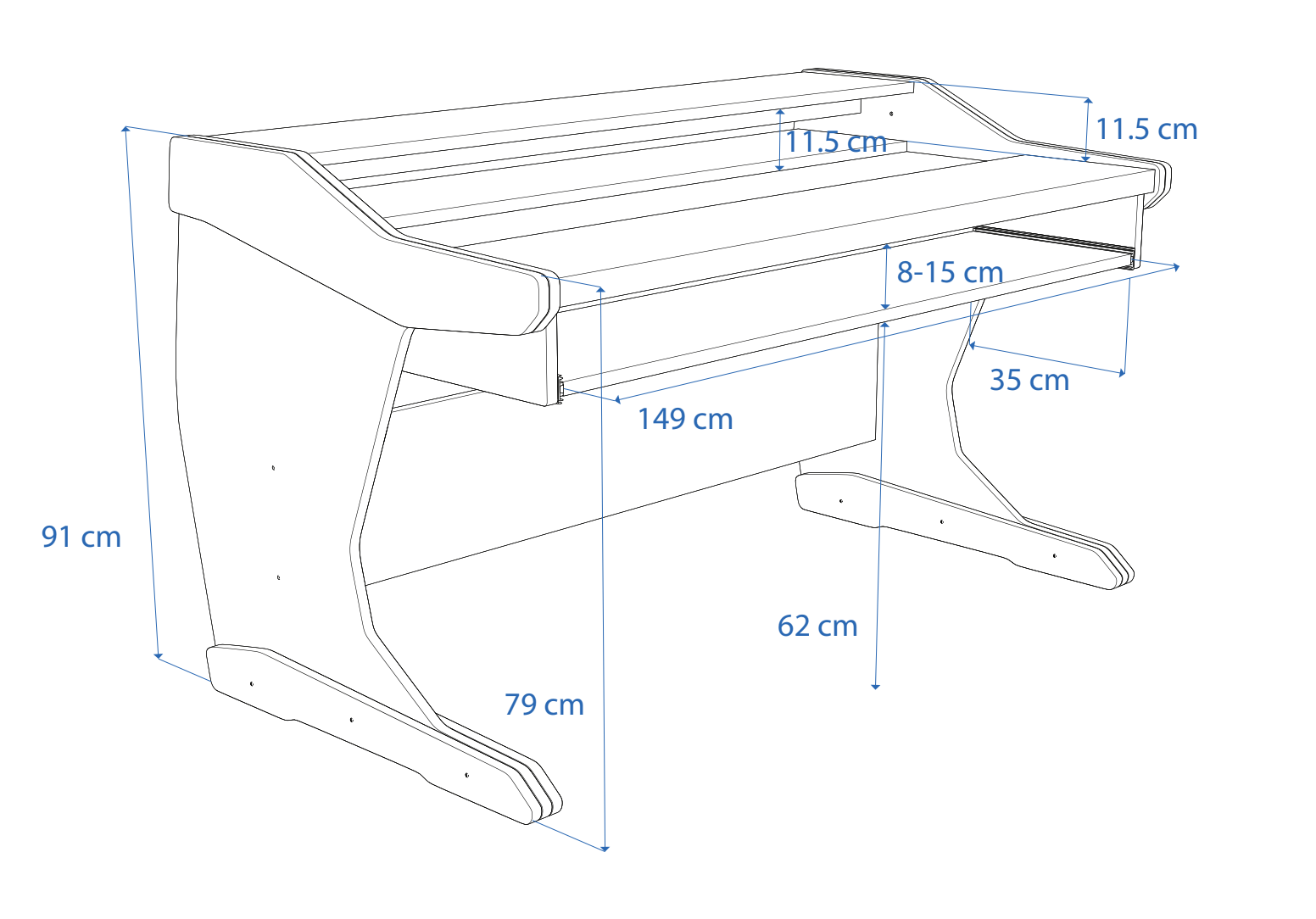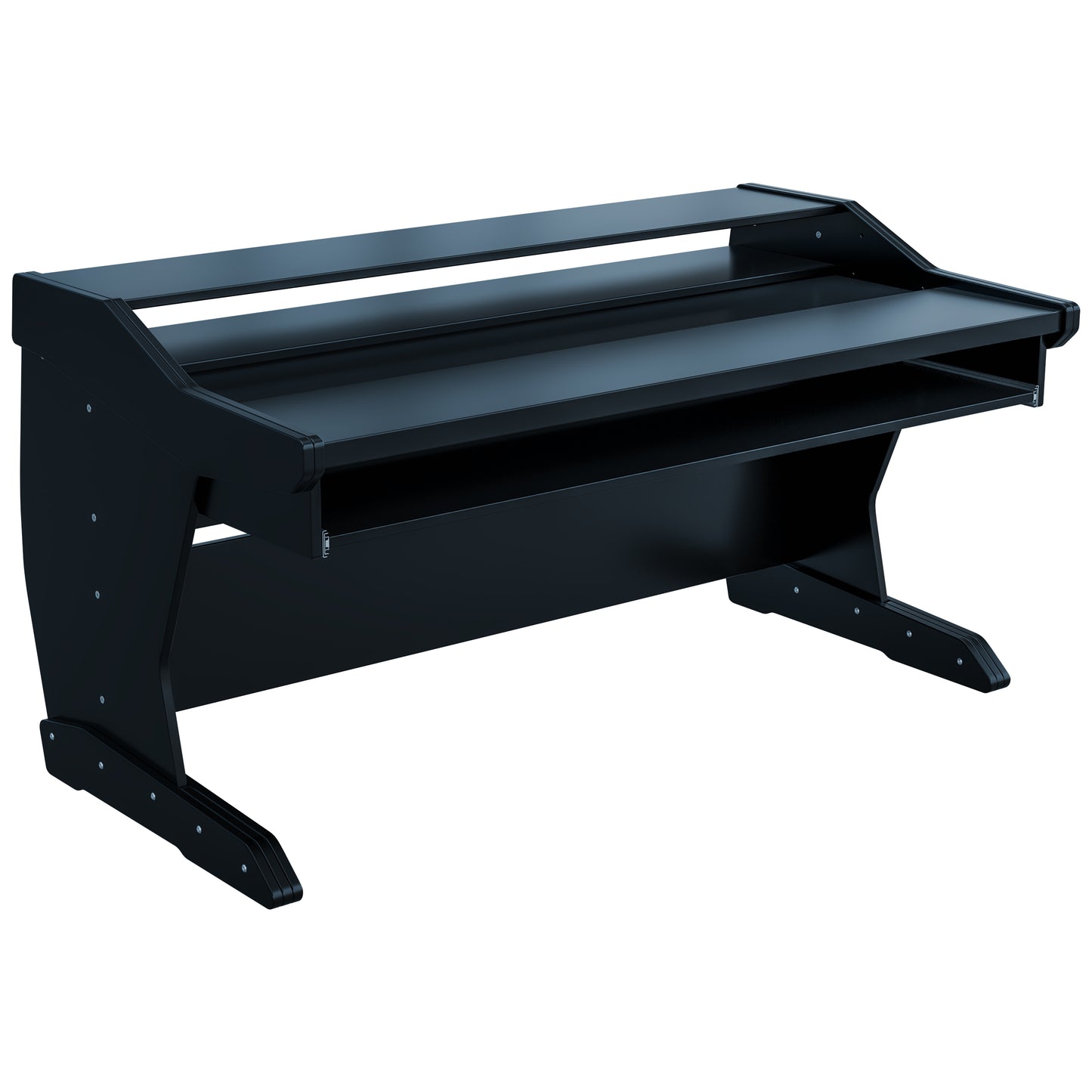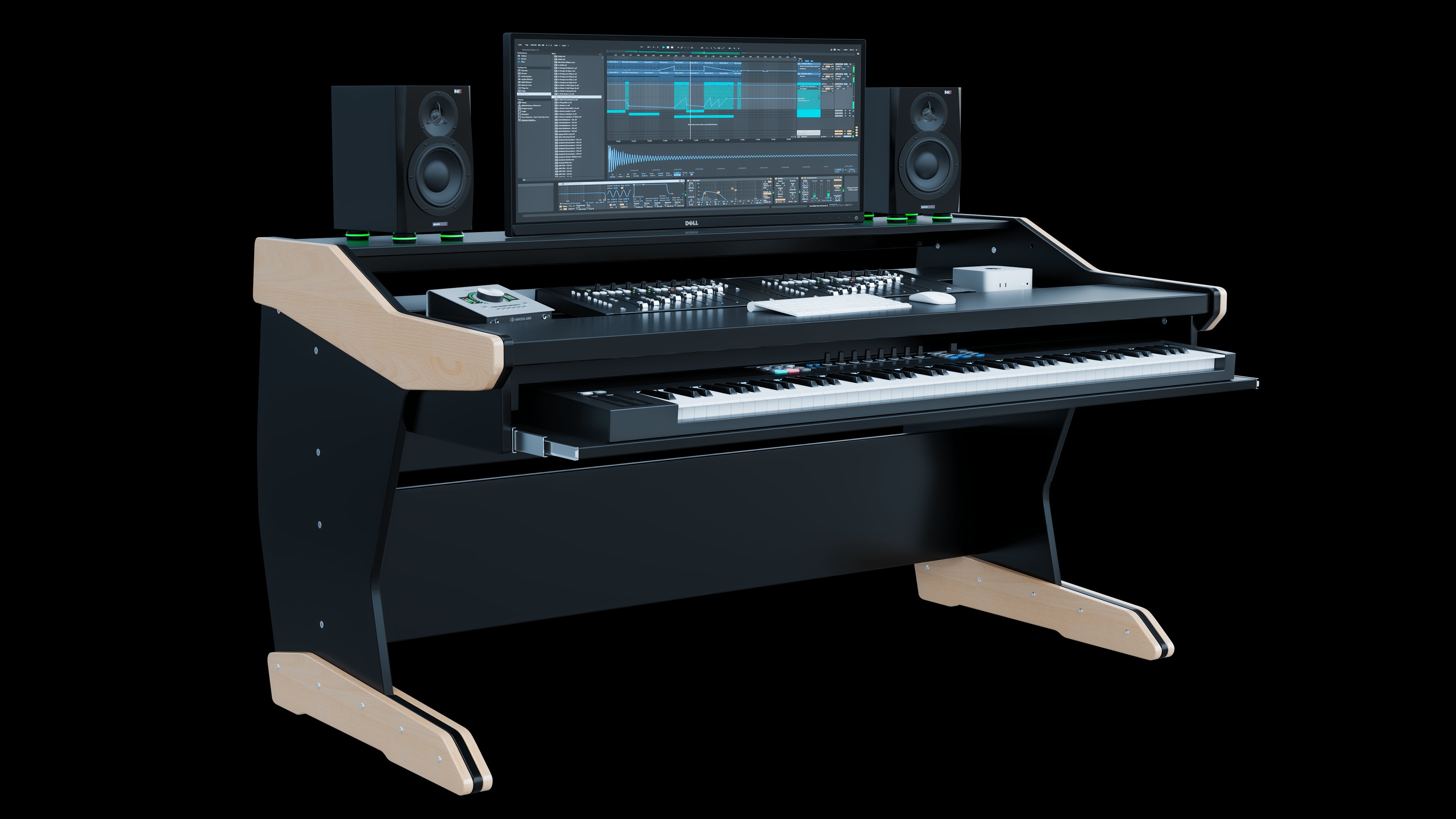 Minimal footprint and maximum functionality in the smallest space without compromise. The adjustable keyboard tray will house most 88-key keyboards.