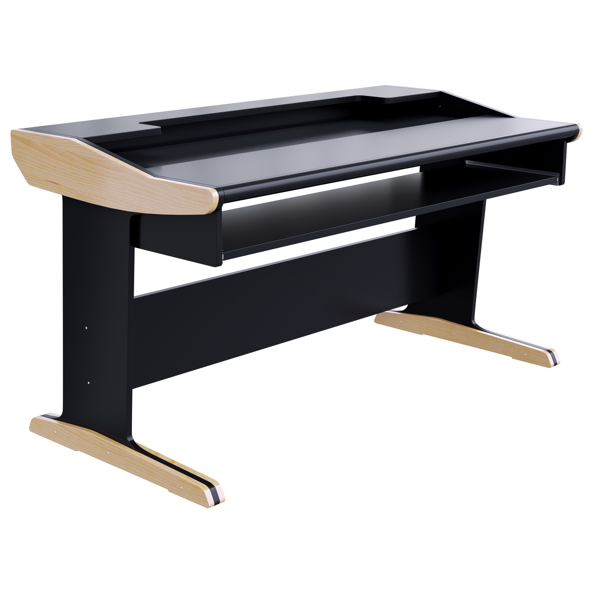 Install the desktop recessed and gain extra space for your tabletop hardware or have the desktop flush and enjoy the large surface in front of you. The adjustable keyboard tray will house most 88-key keyboards.