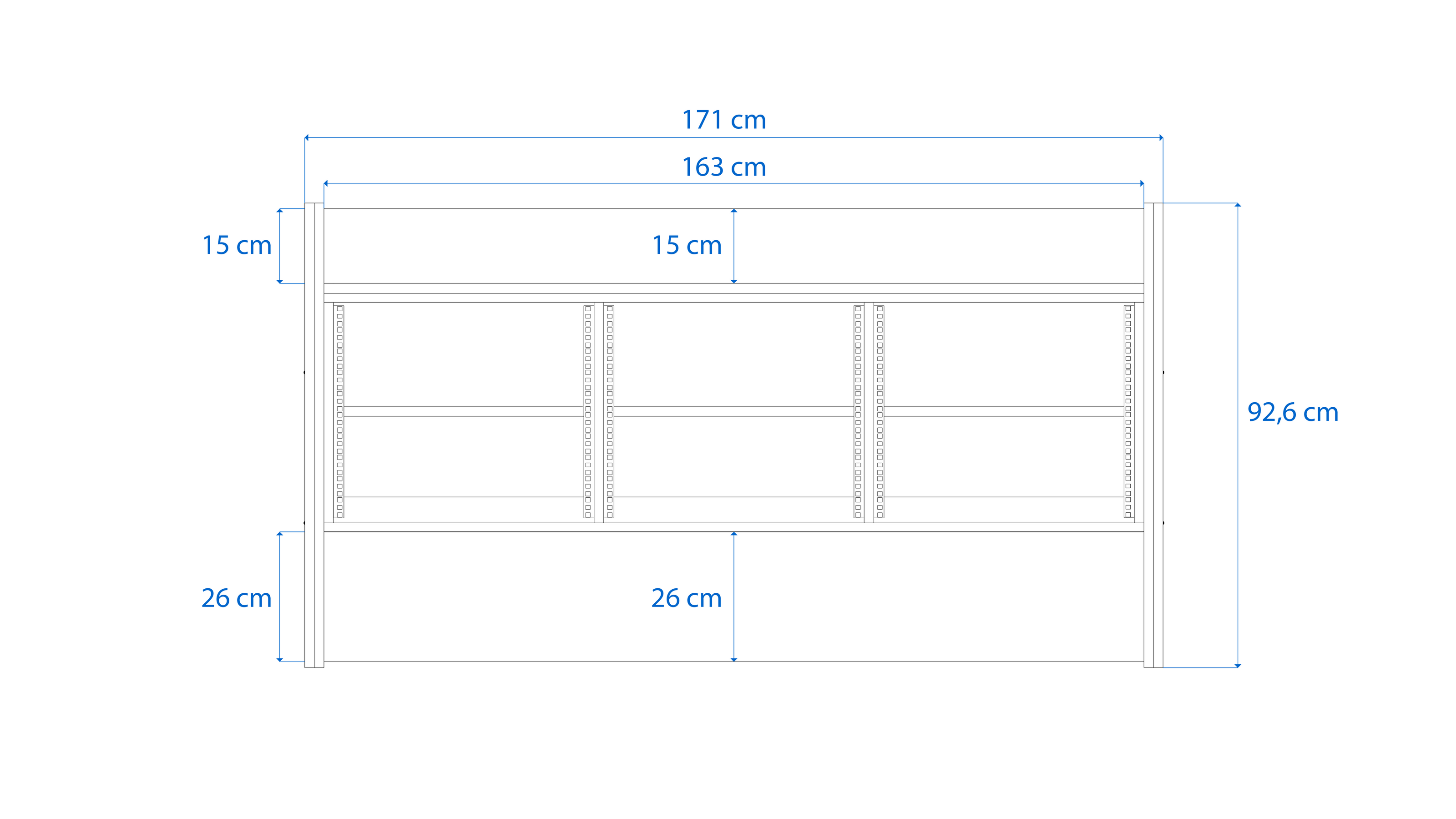 30U rack space, monitor shelf, space for keyboard and mouse. Expandable with optional keyboard tray.