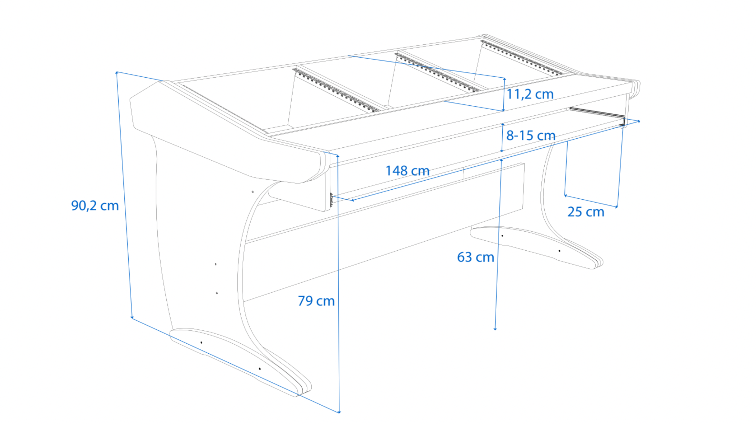 Height-adjustable keyboard tray (8-15 cm), suitable for 88-key keyboards