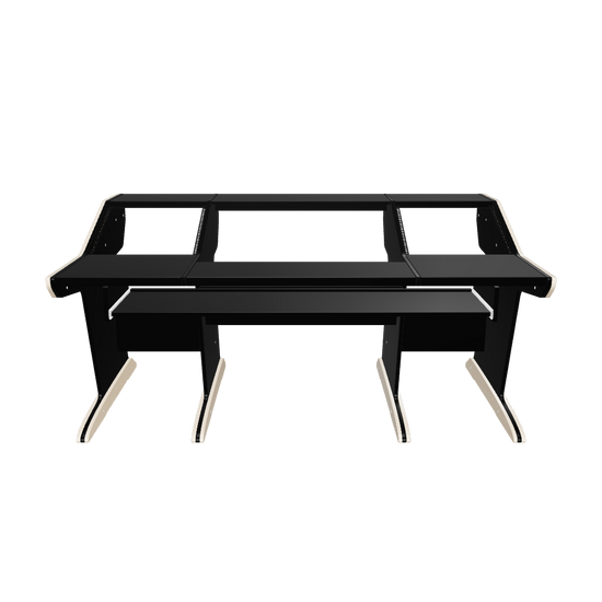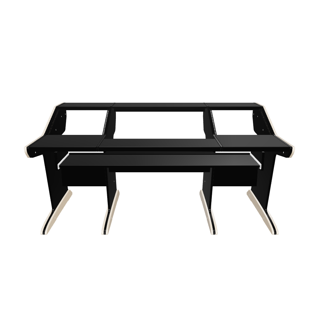 Following the classic lines of the console, our workstation for the Midas F32 gives you 2x10U rack space on both sides of the console. The wide top shelf adds space for monitors and screens. The desktop gives you room for tabletop devices and a mouse and keyboard.