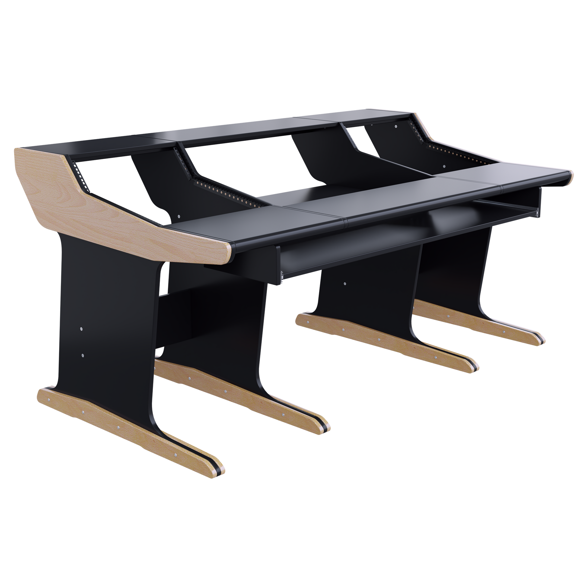 Following the classic lines of the console, our workstation for the Midas M32 gives you 12U rack space on both sides. The wide top shelf adds space for monitors and screens. The desktop gives you room for tabletop devices and a mouse and keyboard.