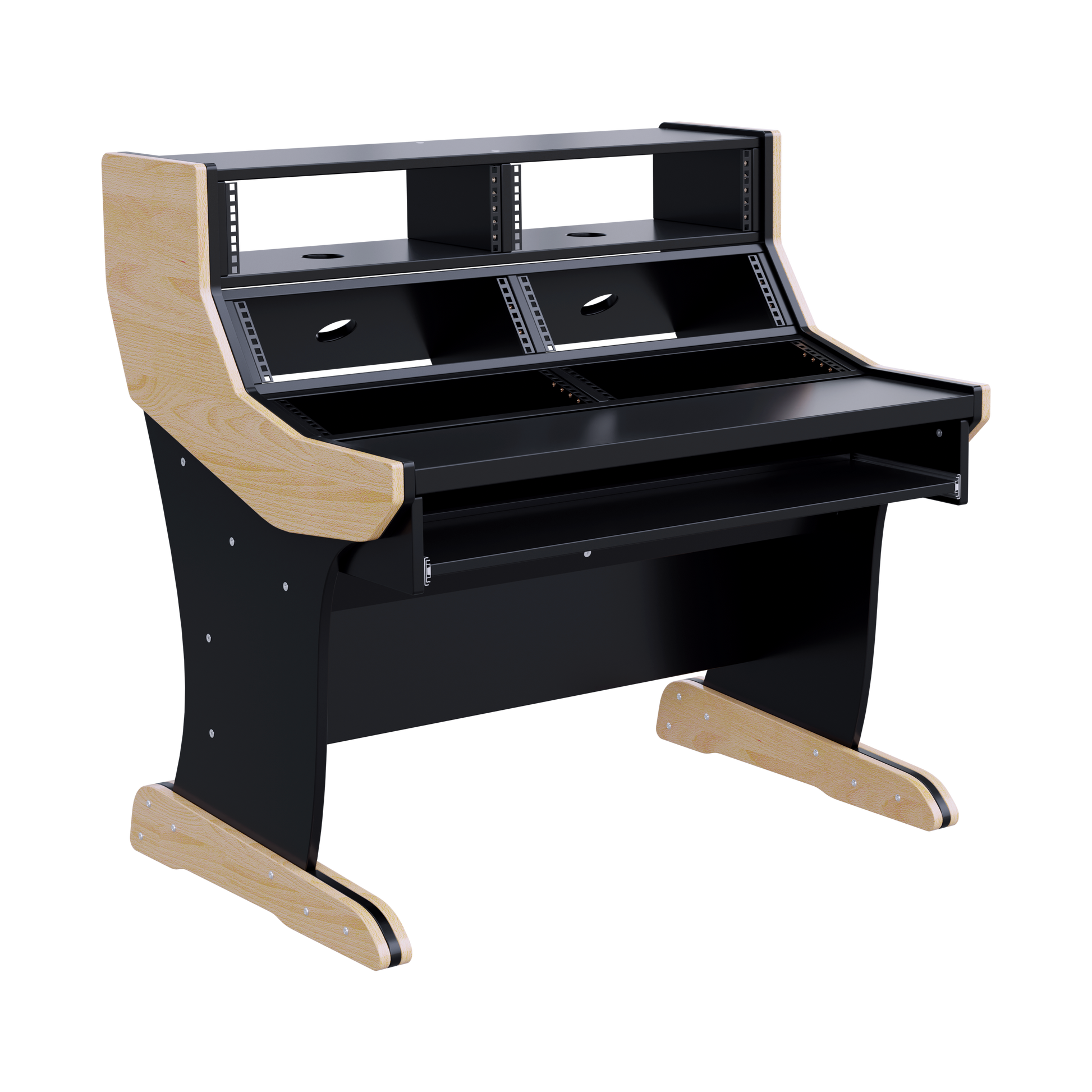 The Modular is a compact, sleek workstation tailored for studios using 19" outboard and Eurorack modular gear. Its minimalist design promotes focus and productivity, offering an ergonomic layout that enhances workflow. With 6x3U rack space, it provides ample room for rack-mounted equipment or Eurorack modular gear, ensuring everything is within easy reach.