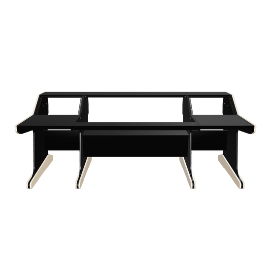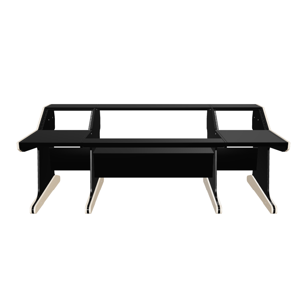 Following the classic lines of the console, our workstation for the Neve 8424 gives you 2x7U rack space on both sides of the console. The wide top shelf adds space for monitors and screens. The desktop gives you room for tabletop devices and a mouse and keyboard.