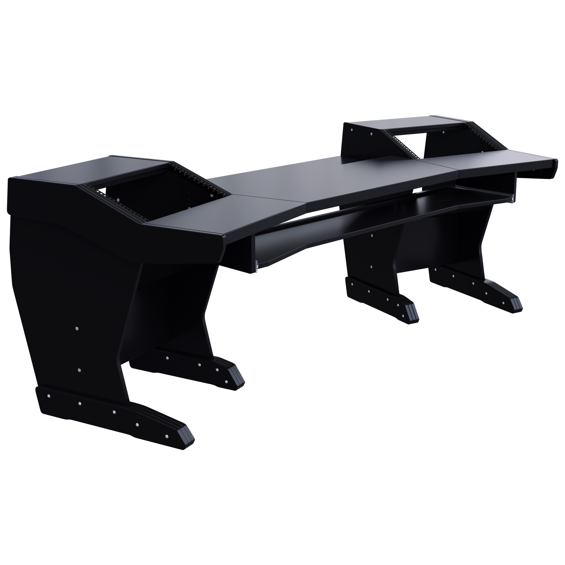 Featuring an 88-key adjustable, removable keyboard tray, a split-level desktop and a comfortable angle of 2x6U racks the Producer XL is perfect for audio professionals in need of real estate for tabletop and rack gear. The additional Rack Kit expands outboard storage capabilities even further. Available in multiple colours and with beautiful handmade trims the Producer XL is perfect for every day in the studio.