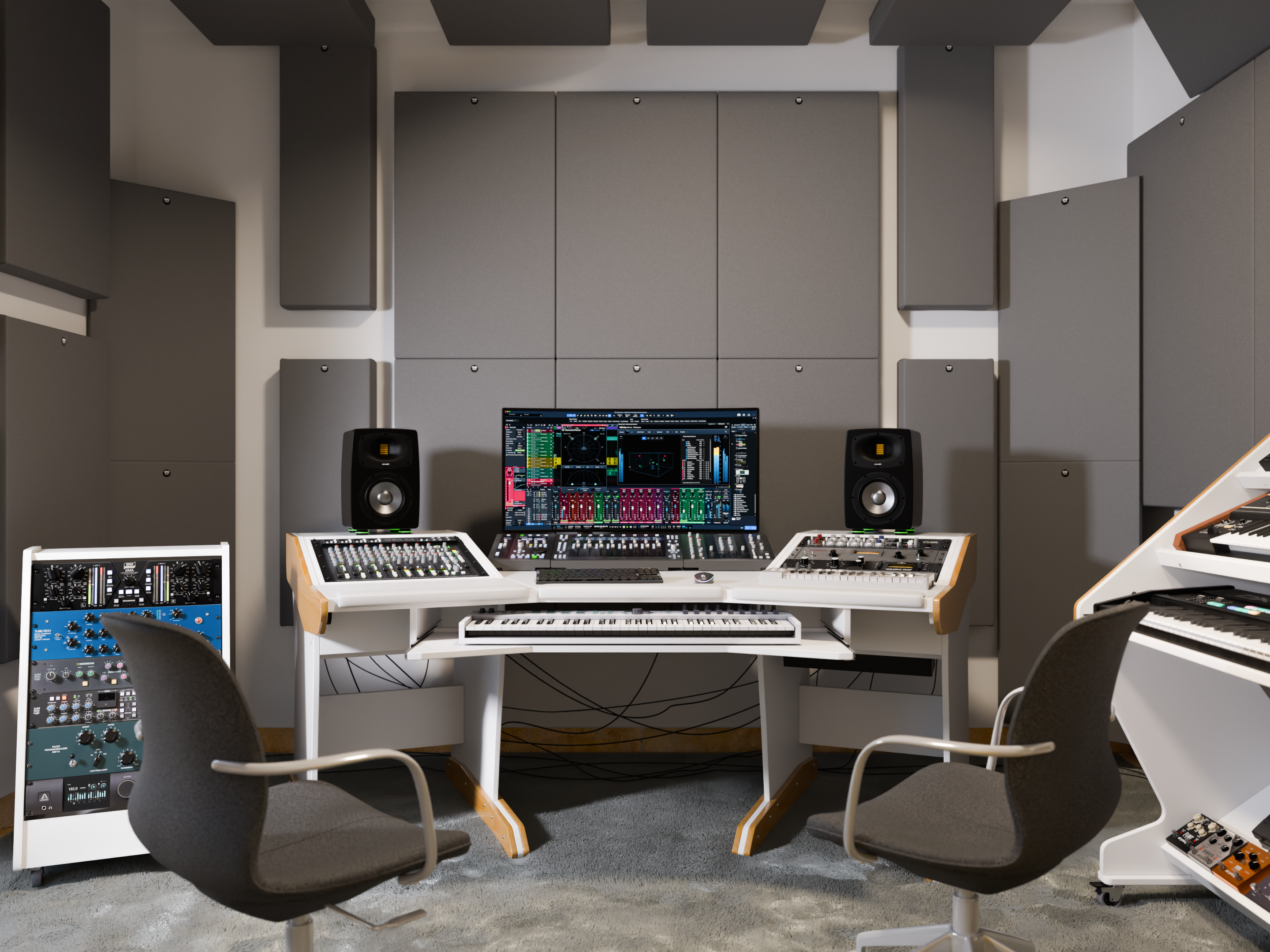Our Budapest Factory presents an acoustically treated studio showroom with 1-2 workstation setups and gear. Discover our latest prototypes and manufacturing facility.