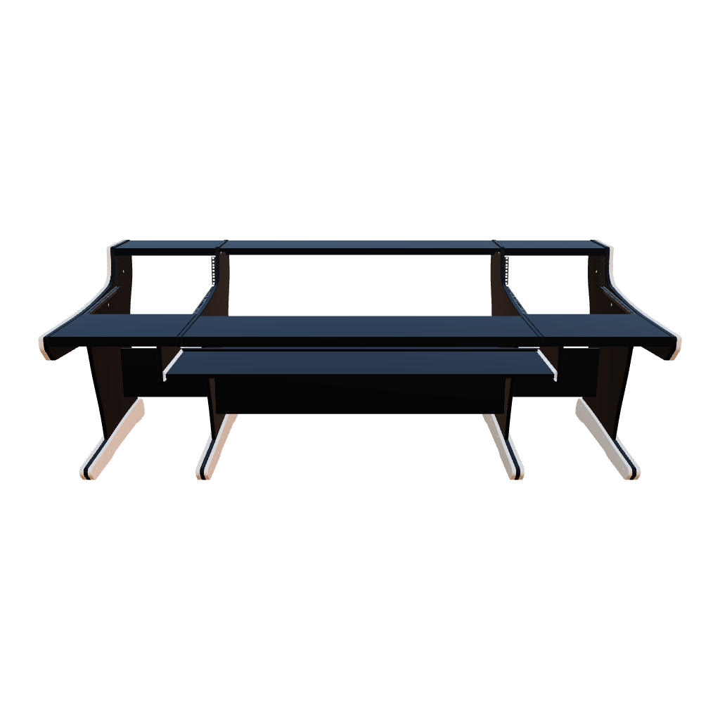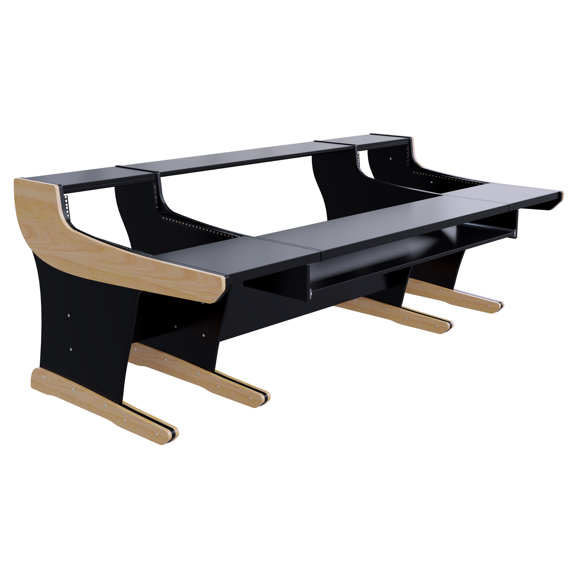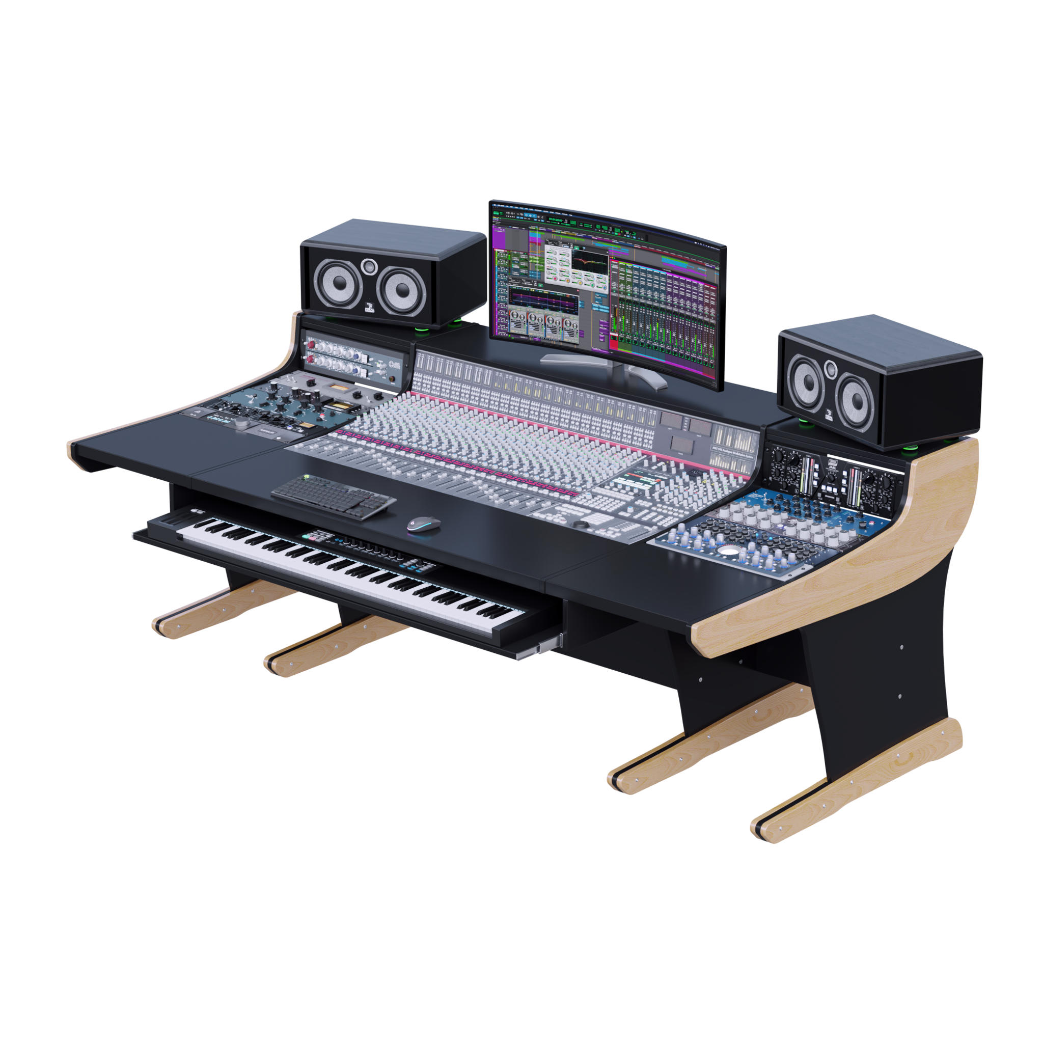 Following the classic lines of the console, our workstation for the SSL AWS 948 gives you 2x15U rack space on both sides of the console. The wide top shelf adds space for monitors and screens. The desktop gives you room for tabletop devices and a mouse and keyboard.