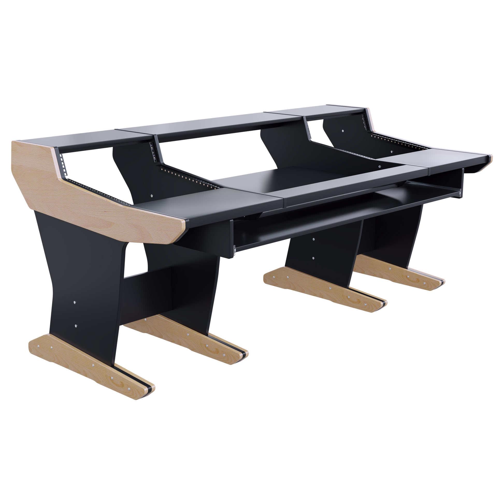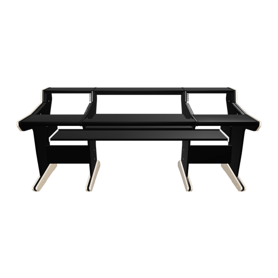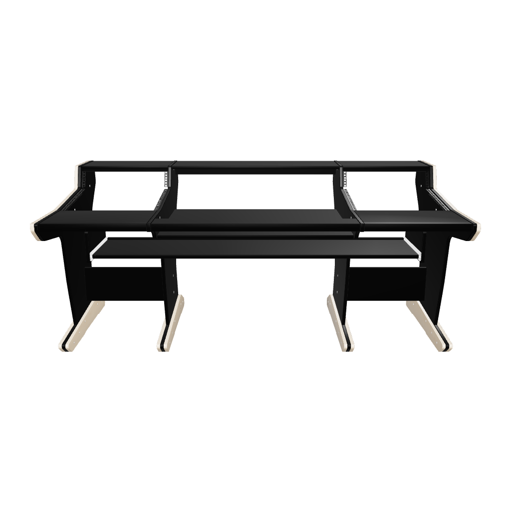 Following the classic lines of the console, our workstation for the SSL Matrix gives you 2x11U rack space on both sides of the console. The wide top shelf adds space for monitors and screens. The desktop gives you room for tabletop devices and a mouse and keyboard.