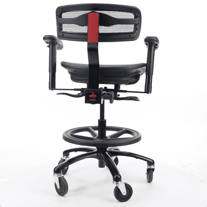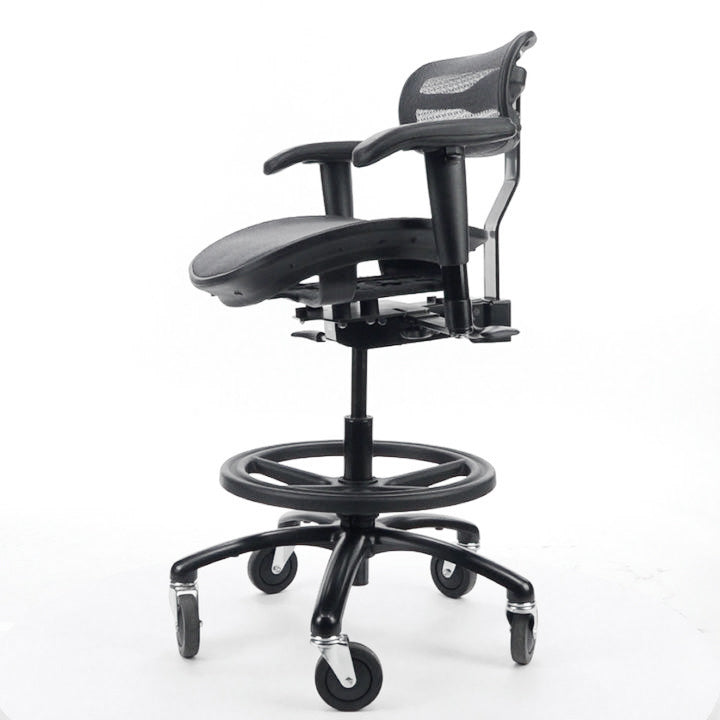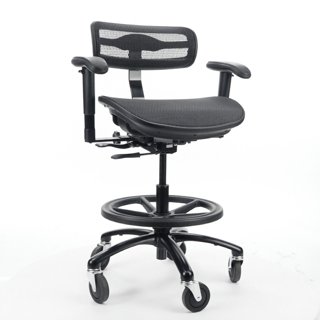 The ErgoLab Stealth Pro Touring Chair, which includes a taller cylinder and a strong, stable footring was designed for professional engineers who sit at a high console, board or table.
