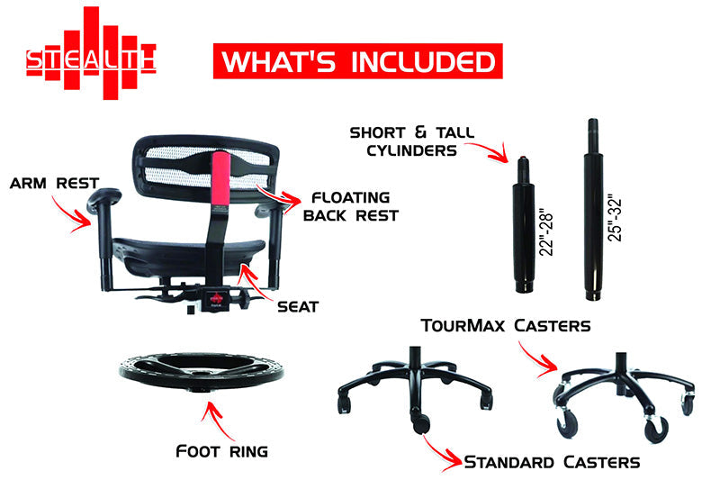 Stealth PRO Chairs are designed for Users Over 6′ and/or Over 200 Lbs. The Larger PRO Seat than the standard allows for a more conforming fit for larger or taller users while tasking. Larger seat Width 510mm / 20".