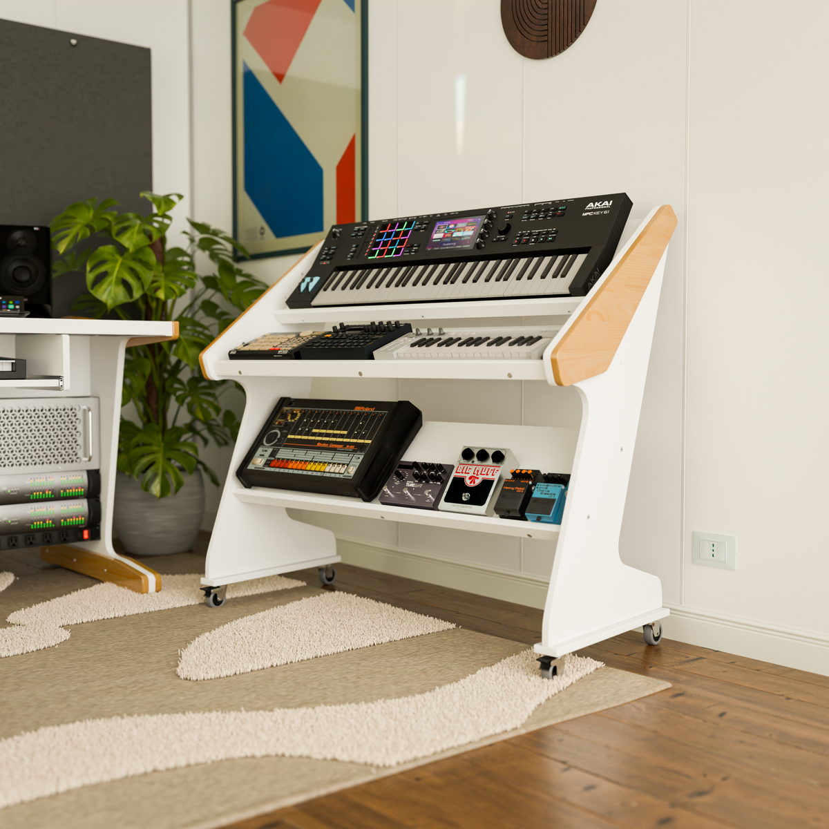 The Synthstation is more than just a stand - it’s a complete workstation for your gear. Perfect for keyboards, synths, drum machines, and pro-audio gear, it combines stability with flexibility. Heavy-duty, lockable castors make it easy to move when you need to rearrange your space and stay firmly in place when it’s time to create.