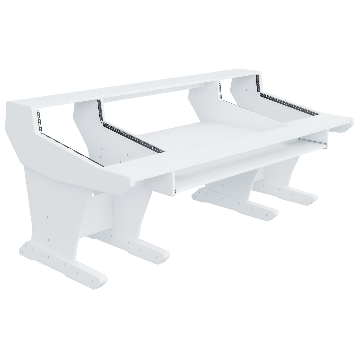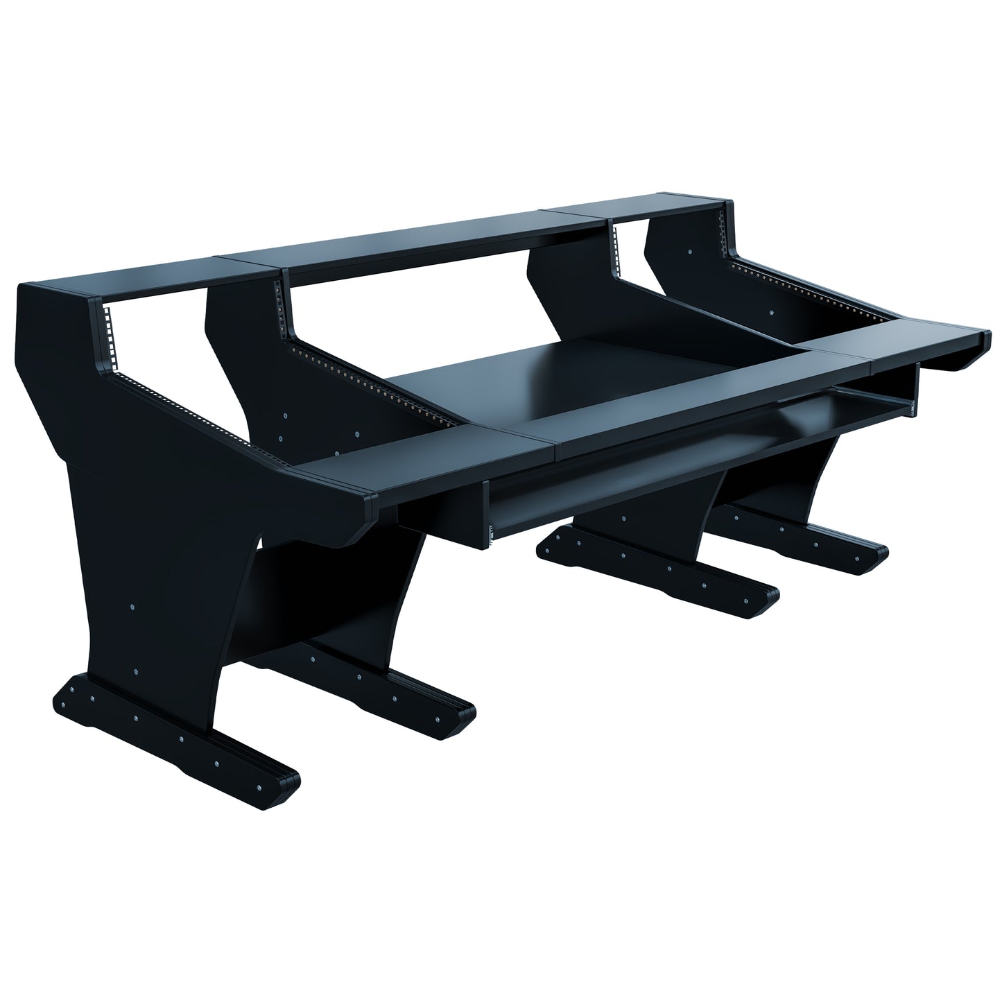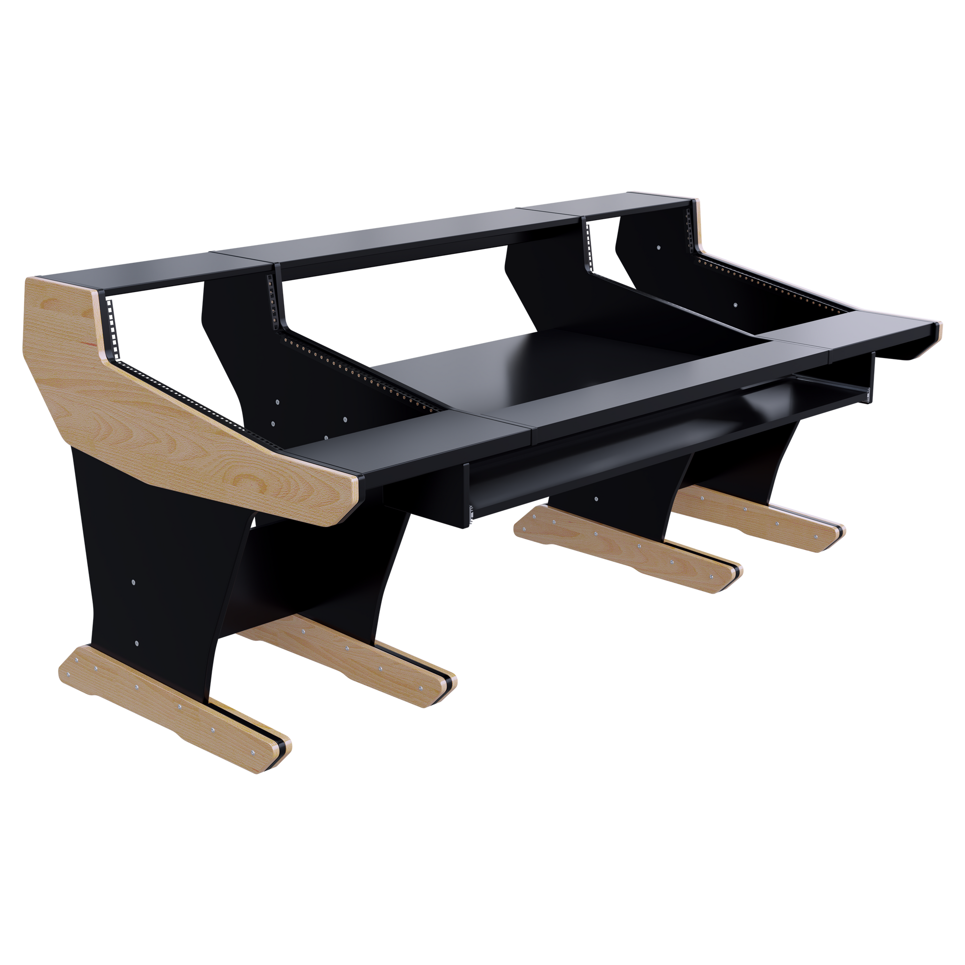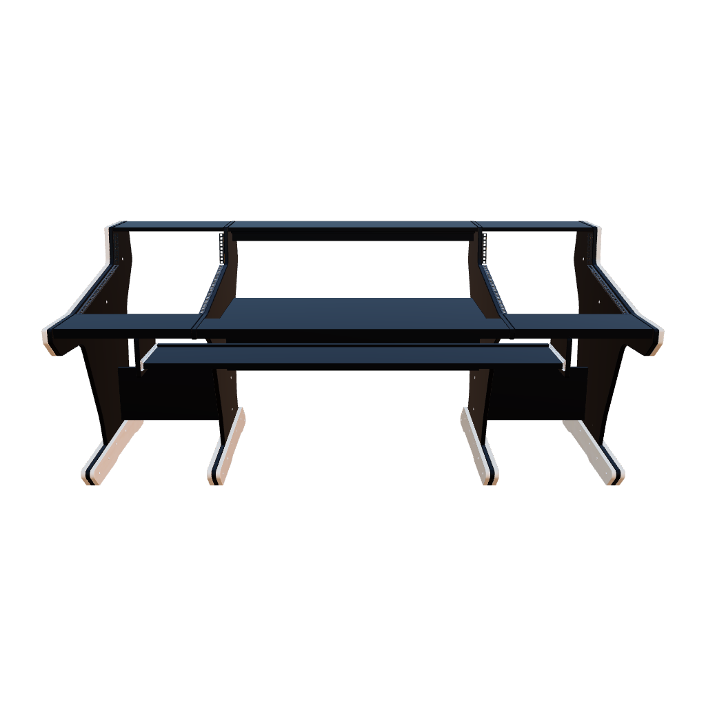Following the classic lines of the console, our workstation for the Trident 78 series gives you 2x16U rack space on both sides of the console. The wide top shelf adds space for monitors and screens. The desktop gives you room for tabletop devices and a mouse and keyboard.
